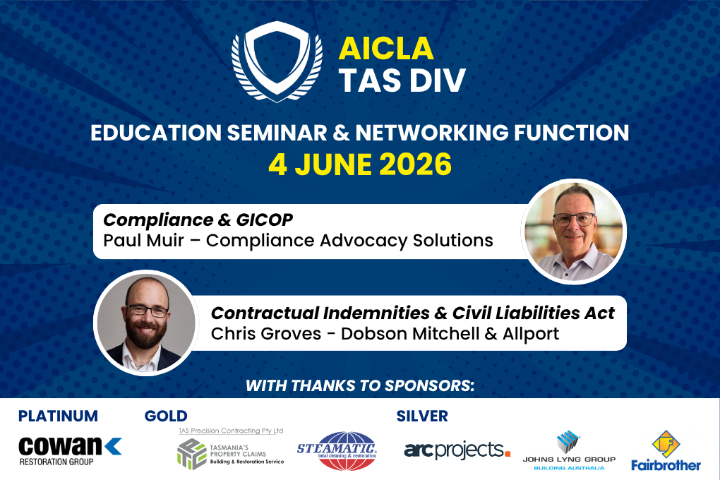 Save the Date Join AICLA Tasmania for an education seminar and networking function! AICLA CPD: 2.5 Points Our thanks to sponsors: Platinum Gold Silver Join our non-member mailing list to be notified when tickets become available