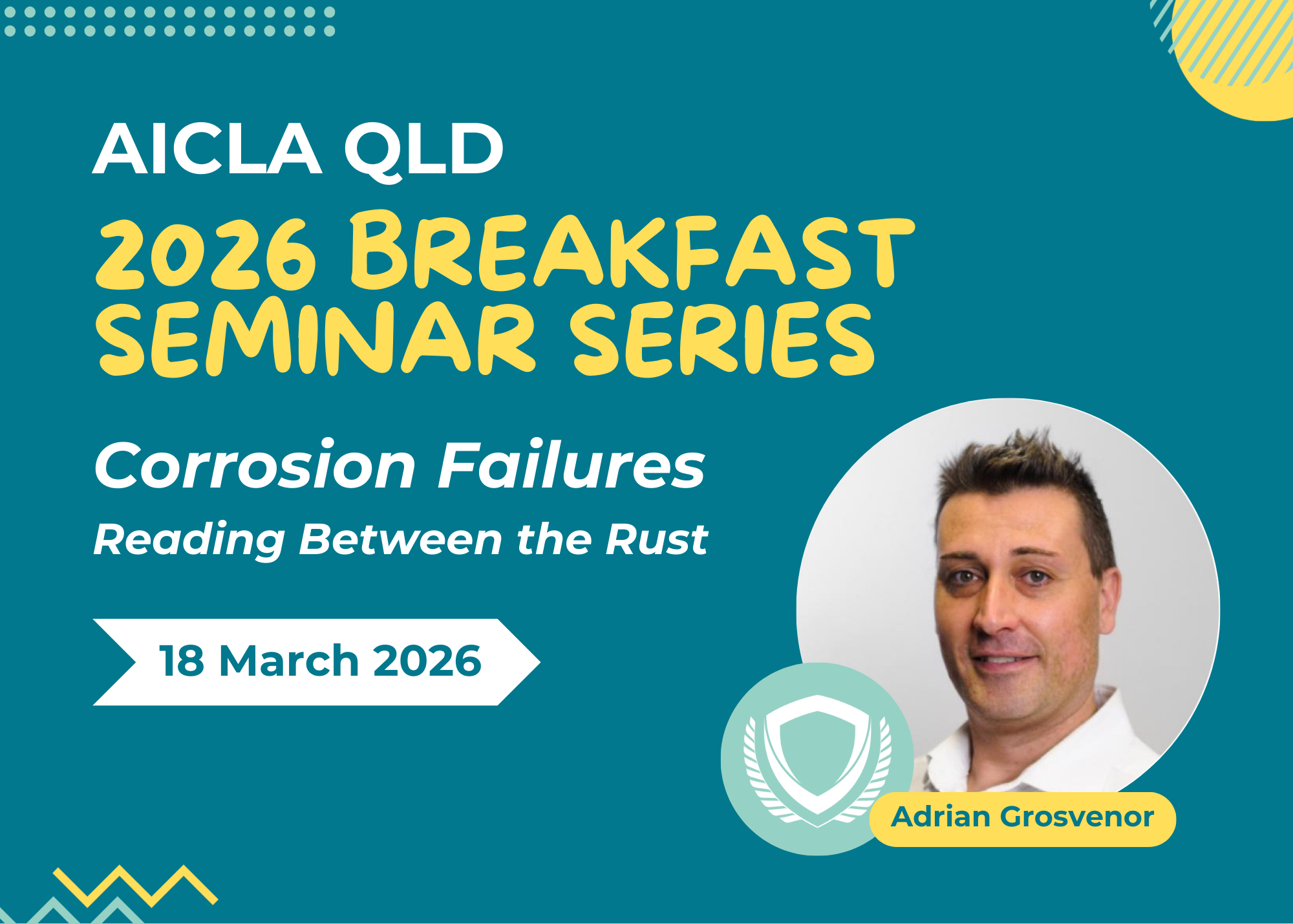 AICLA QLD Division's first breakfast seminar for 2026 will be held at the Garden Marquee, Victoria Park on 18 March. Corrosion Failures: Reading Between the Rust Presented by Adrian Grosvenor, General Manager Engineering Consulting at ATTAR. Numbers are limited, so early registration is recommended. AICLA CPD: 1 Point With [...]