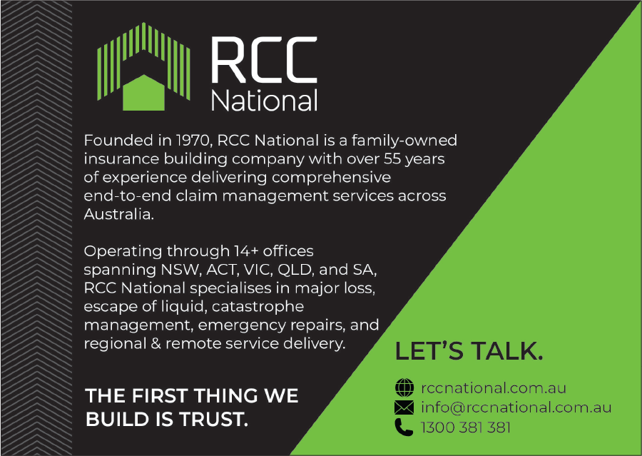 RCC National are accredited state-wide domestic and commercial builders with more than 55 years experience in property re-instatement insurance claims, 24 hour emergency repairs and catastrophe event management. The foundation of the company is built on the establishment of key relationships across service regions with the focus on upholding our company standards - quality workmanship, timeliness, and customer service.
